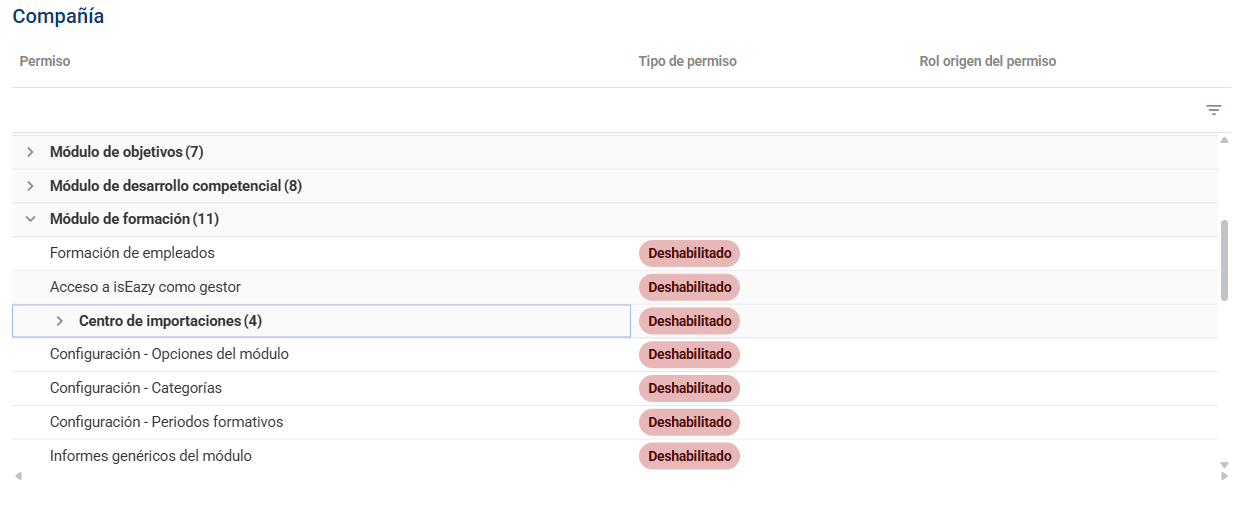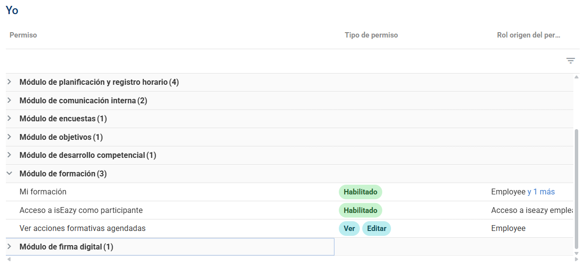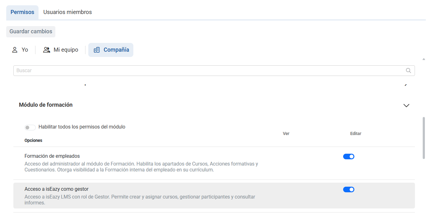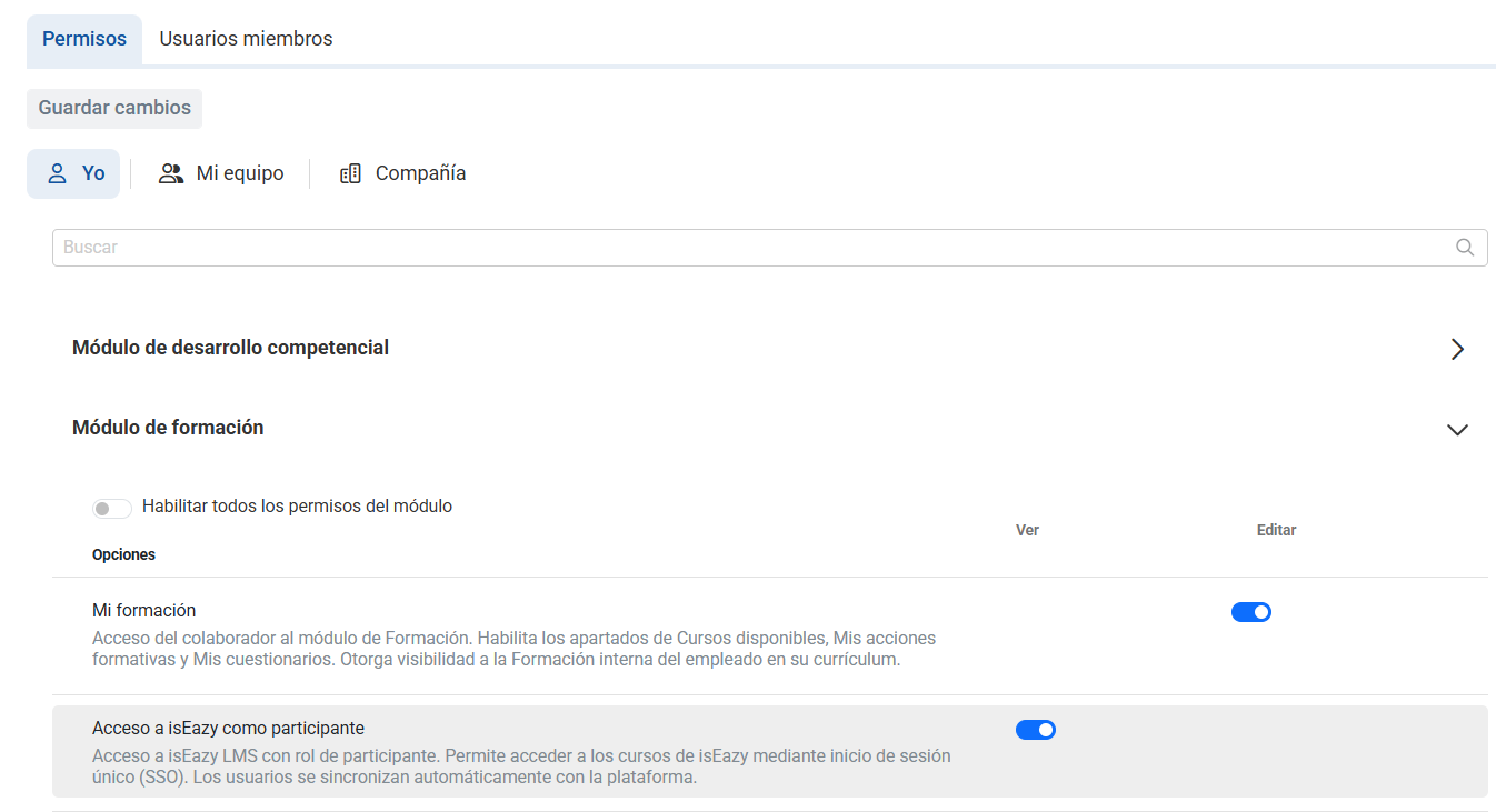 - Mayor control: Activa o desactiva el acceso a formación desde la gestión de roles y permisos.