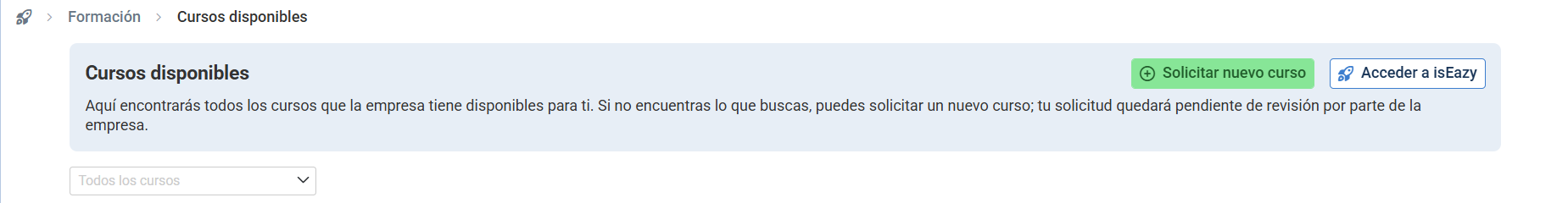 - Navega a Formación > Cursos disponibles. Si tiene el permiso activado, en la esquina superior derecha aparecerá el botón "Acceder a isEazy"