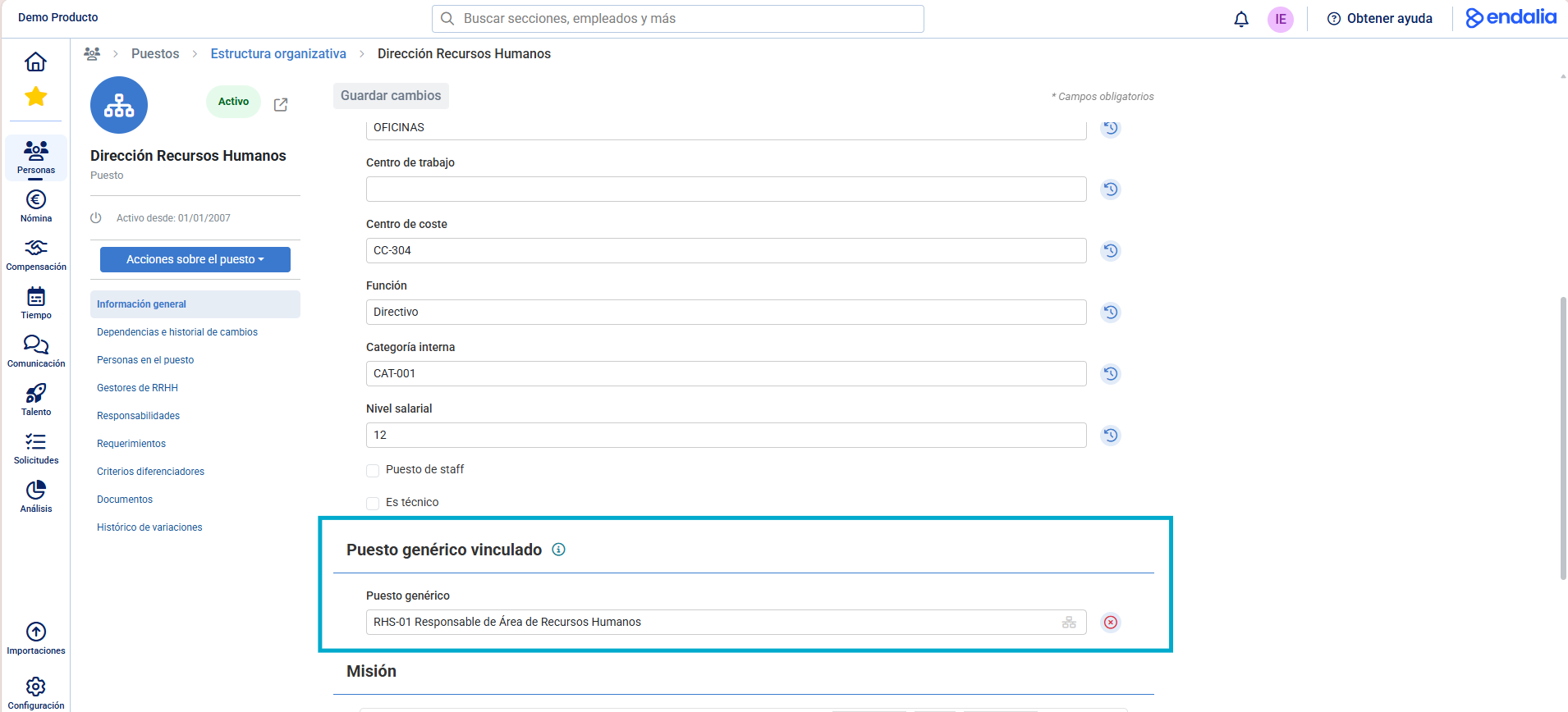 Dentro de los campos de información del puesto, localiza el campo Puesto genérico.