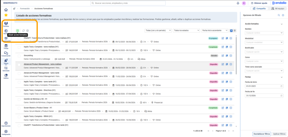 - Opción 2: Desde el listado de "Acciones formativas"