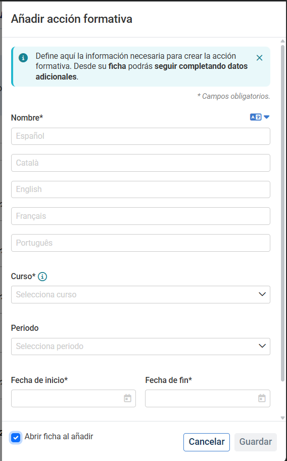 Paso 2: Abre la ficha de la acción formativa para completarla: