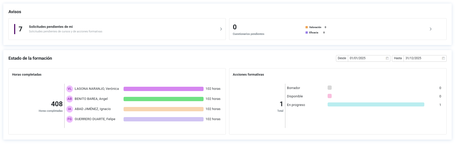 - Solicitudes de inscripción (alta) - Cuando un colaborador de tu equipo solicita inscribirse en una acción formativa.
