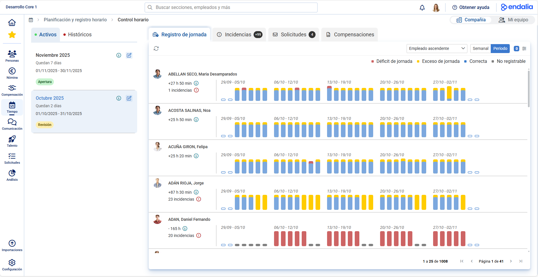 Lanzamos las Compensaciones Especiales, una nueva funcionalidad que permite gestionar de forma ágil y transparente aquellas retribuciones extraordinarias vinculadas al tiempo de trabajo. Define reglas de compensación adaptadas a las necesidades de cada equipo y aplica ajustes específicos sin complicaciones. Además, incorporamos un nuevo panel de monitorización que centraliza toda la actividad del registro horario en un solo lugar: balance horario, incidencias, solicitudes y compensaciones. Ahora tendrás una visión completa de lo que ocurre en tu organización, facilitando el seguimiento diario y la toma de decisiones sin necesidad de navegar entre múltiples pantallas.