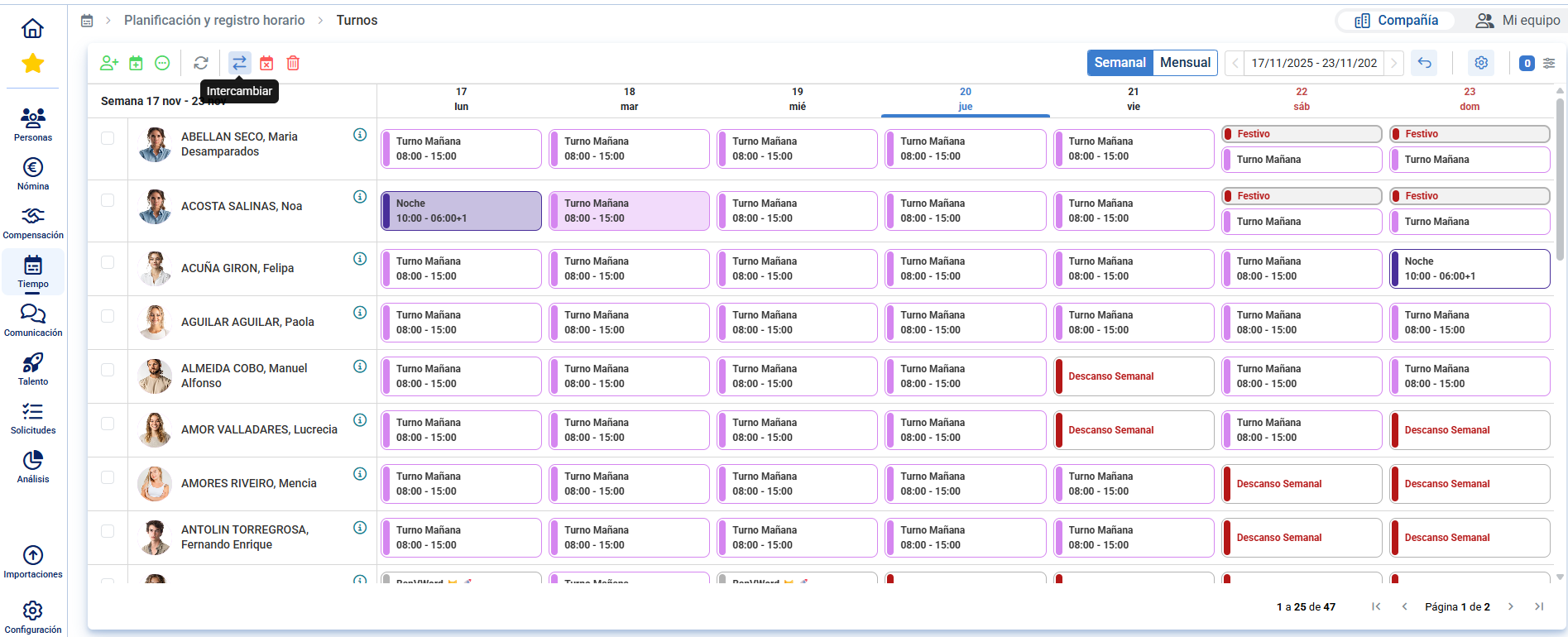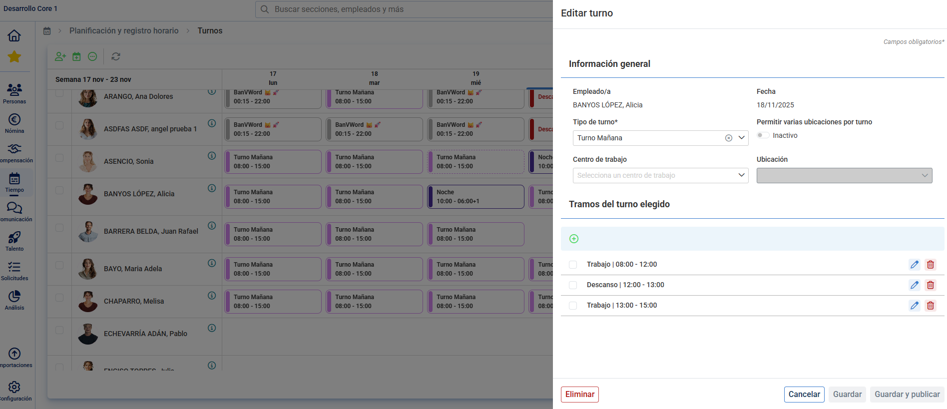 Pour réaliser des planifications d'équipes, il est courant de gérer le modèle hebdomadaire ou mensuel avec les équipes encore non publiées, étant une fois acceptées et validées par les intéressés, elles sont publiées pour être incorporées à la planification des collaborateurs.
